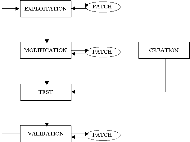 Durant le cycle, le procédé industriel n’est arrêté qu’en phase de test, la production est continue le reste du temps. Tout au cours du cycle, des activités de PATCH peuvent avoir lieu lors de phases de modification, de validation et d’exploitation. Les différentes phases sont décrites ci-dessous.